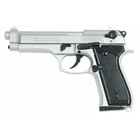 This blank firing gun would be perfect for a movie gun or prop gun. Also great for animal training, as a starter pistol, and more! Our prop guns look and feel like the real thing. A Model 92 reproduction. A variation of a world famous semi automatic Italian military handgun. This model has a modified trigger guard to suit a two handed grip and extended magazine base. Authentic full sized, full operative blank firing reproduction.