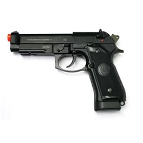Beretta M9A1 airsoft pistol 1:1 replica, officially licensed, Beretta trademark engraved Uses a 12-gram CO2 cartridge (not included) Semiauto gas blowback action 22-rd mag Full-metal body Textured grips Adjustable Hop-Up Accessory rail under the barrel Ideal for war games, firearm training & plinking 380 fps with .12gr BBs 20gr and heavier BBs recommended for reliable feeding, performance & accuracy 30-day manufacturer's warranty ... ... Beretta M9A1 CO2 pistol...