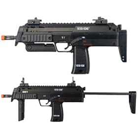 The TF7 full auto and semi auto airsoft machine gun. If you're ready to step up as a force to be reckoned with, add the TF7 airsoft rifle to your collection.... This outstanding airsoft gun features metal gears, semi and full automatic modes, a 40 round BB clip, velocity of 300 feet per second, retractable stock, charger and battery, front folding grip, and adjustable hop-up. As if all of that wasn't enough, it comes in both a realstic black version and a clear model, plus, it's just cool.... Tactical Force Airsoft Machine RifleFull Metal Gears Hop-Up: Adjustable Length: 23.25 Weight: 3.15 lbs. Rear Sight: Adjustable Barrel: MetalMagazine Capacity: 40 rounds Battery and charger included...