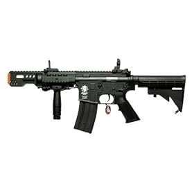 * Metal Hi-Cap Magazine * Adjustable Enhanced Hop Up Unit * Flip-Up Sight (Front and Rear) * Premium Battery Box for battery compartment * Unique Look * InnerBarrel Length: 285mm * Barrel Caliber: 6mm * BB Capacity: 300Rounds * Initial BB Speed: 360fps * Battery Type: Battery Box (custom) * Package includes: 1 300 Round High Capacity Magazines, Custom Battery and Charger.