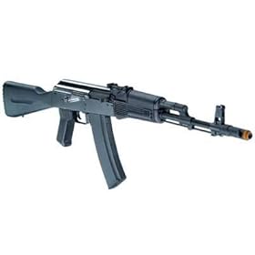 Full size, full metal 1/1 replica. Contains 600-round hi-capacity magazines and also has a working charging handle which can be pulled back to reveal the hopup mechanism. This AEG shot an unbelievable 360 fps and 490 fps with 0.12g BBs.