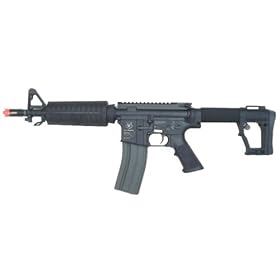 The distinctive SOPMOD adjustable stock is equipped with a single point sling attachment for faster transition to your secondary. Ultra short barrel is very useful for CQB work. The QD metal rear sight can be removed for addition of optional red dot scope for quick target acquisition