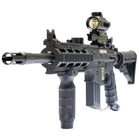There is a new tactical role in today's battles: the Designated Marksman. Not a full time sniper, but with an upgraded service weapon capable of precision fire when needed. Here's a package to fill that need. Loaded with features such as a Smart Parts 16" Tactical Barrel for enhanced accuracy without sacrificing maneuverability, a 30mm Red Dot Sight with riser rail for target acquisition and mask clearance. The Collapsible and Folding Stock seats into the shoulder cup and the Ergonomic Foregrip combine for a steady shooting platform. Be prepared for when your team needs that extra push! Designated Marksman Package includes: # US Army Project Salvo Marker # Smart Parts 16" Tactical Barrel # Deluxe Ergonomic Foregrip # 30mm Red Dot Sight # Riser Rail # Sling