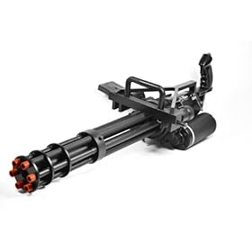 The minigun is a multi-barrel machine gun with a high rate of fire (several thousand rounds per minute), employing Gatling-style rotating barrels and an external power source. In popular culture, the term "minigun" has come to refer to any externally-powered Gatling gun of rifle caliber, though the term is sometimes used to refer to guns of similar rates of fire and configuration, regardless of power source and caliber. Specifically, minigun refers to a single weapon, originally produced by General Electric. The "mini" of the name is in comparison to designs that use a similar firing mechanism but 20 mm or larger shells, such as General Electric's earlier M61 Vulcan.