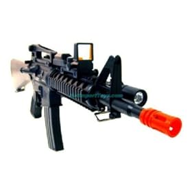 This is a Tokyo Marui Replica Fully Automatic M16 A4 M4 RIS Airsoft Rifle. Fires at 330 fps w/ 0.12g BB. It can shoot through an aluminum can. Extremely powerful, effective at 50 meters range. Its ready for Competition! High capacity magazine holds 300 rounds. Fully auto, semi auto & safe mode. The charging rod reproduces the mechanism in the real guns. Pulling the charging rod will eject the bullet cover, exposing the Hop-Up adjusting gear. U.S. Army, Navy, Seal Commando, Counter Strike, Battlefield 2 Gun. This is better than Japanese Brands which cost you at least $400 a gun. With a fraction of price, you get the same quality automatic electric gun with the state of the art adjustable Hop-Up technology with helps fire more accurately and harder. It comes ready to play, no assembly required. Easy open body allows for easy upgrade. Most of the parts compatible with Tokyo Marui, and they are replaceable if it worn out. It is also upgradeable to even higher power, over 500 FPS. Please refer to your local airsoft store for an upgrade job.