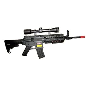 New release on May 07, JG`s new M4 RIS system. Best of JG guns Metal gear box Heavy weight body, with a lot of metal parts Adjustable front and rear sight Adjustable Hop-up system Weight: 3000g Hi-cap magazine 300 rds Full size Semi full auto with functional safety Interchangeable rear and front sight Velocity 500fps with .12 bbs, 420+ with .20 bbs Mini battery 8.4 1100mAH Includes battery and charger Spring 120 grade! Retract stock One-piece metal barrel Flash hider cap.
