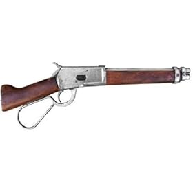 This is the cut-down version of the loop lever 1892 that was made famous in the TV series "Wanted Dead or Alive". Our authentic non-firing model features an antiqued gray receiver with saddle ring, working lever action, wood forestock and cut down shoulder stock, cut down 10" metal barrel, and metal butt plate and barrel ring. This is a must have classic for the old west collector and has never been available before at this price! Imported exclusively by Collectors Armoury, Ltd. Features Length: 21" Weight: 3.5 Lbs