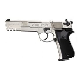 CP 88 NICKEL The Walther CP88 features a frame-mounted thumb safety, rifled steel barrel, rear sights are adjustable for windage, contoured checkered grips, serrated slide assembly all packaged in a foam lined hard side case.... A new generation of C02 airguns! The original Walther design as well as the outstanding workmanship are impressive. This 8-shot double and single action repeater represents a giant leap forward in CO2 pistol technology because it's both fast and easy to reload with the convenient 8-shot rotary magazines that can be preloaded until you're ready to shoot. Due to the modular system the pistol can be used for various shooting activities. It is a popular gun for beginners and training purposes.