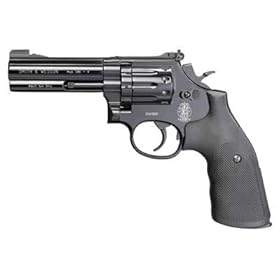 This classic airgun by Smith & Wesson air pistols features a 4" barrel, polished blued steel, and a 10 shot rotary clip. It's similarity to the classic .357 magnum revolver is astonishing. Aside from the hours of shooting fun this product offers collectors a long lasting value. The 10 shot rotary clip swings out for easy replacement as on the original revolver. The double action and ability to purchase additional clips can provide you with hours of enjoyment. Sights: Post Front Sight, Rear Sight adjustable for windage.