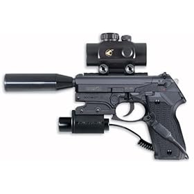 The PT-80 Tactical incorporates the “shoot from the hip” advantage only the accurate Gamo Flashlight system can offer. With this great looking pistol you can fire 8 pellets (Not BB’s) as fast as you can pull the trigger. The barrel breaks in the back to expose a cylinder that can also be used with the PT-90.