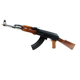 Fully Automatic AK 47 Airsoft Rifle. Rifle is brand new in the box. With a fraction of price, you get the similar quality automatic electric gun with the state of the art adjustable Hop Up technology with helps shoot more accurate and harder. It comes in a charger and recharge battery, ready to play package. It is also upgradable to higher power, please refer to your local airsoft store for upgrade job.