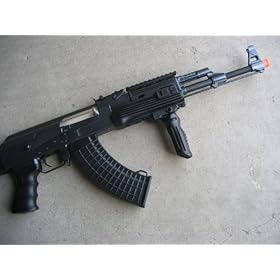 This is a Fully AUTOMATIC AEG with reinforced internals and full metal barrel and metal body. It shoots at Full Auto or Semi-auto mode. This weapon is 100% TOKYO MARUI OEM REPLICA AK47 AEG Rifle featured with metal body and metal gears, fully adjustable hop-up. Classic black - beautifully finished - ideal for collection! NIB comes with battery, charger, instructions, bbs and a 400-round high capacity AK47 magazine.